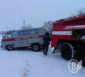 В 12:45 в селе Петровском, Бахмацкого района в снежный занос попал автомобиль скорой медицинской помощи.