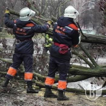В Чернигове дерево упало на проезжую часть на проспекте Мира, 211-А – около ООШ №33. Спасателям пришлось убирать его из... легковика.