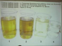 Потім Леонід Бурковський показав журналістам «картинки» - фото тих самих проб води. Аби впевнилися, що води чорного кольору серед них немає.