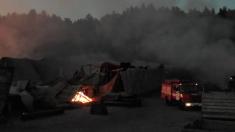 Охоронець підприємства близько 16:00 помітив загоряння в одному з металевих ангарів. Спроби чоловіка загасити пожежу вогнегасником результатів не дали, адже вогонь по утеплювачу з легкозаймистого пінополістиролу швидко розповсюджувався по конструкціям будівлі.