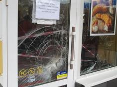 Не допомогли навіть стікери про заборону пияцтва і собак. Та й стікер «Об’єкт під охороною» скло не врятував.