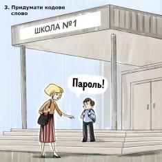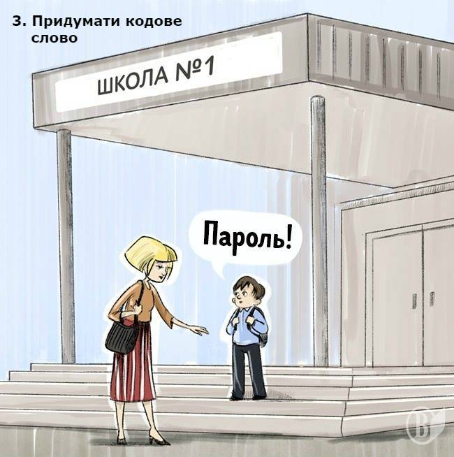 3. Якщо незнайомець пропонує дитині піти туди, де його чекають мама або тато, нехай вона попросить його назвати імена батьків і якесь кодове слово. Придумайте разом із дитиною пароль для екстреного випадку, якщо раптом доведеться просити когось із знайомих її забрати. Пароль має бути нестандартним, щоб його неможливо було відгадати. Наприклад – пухнастий апельсин.