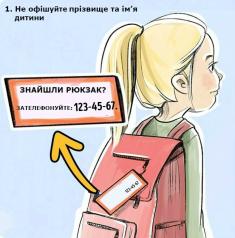 1. Не пишіть імені й прізвища дитини на її речах, бо так їх може дізнатися хтось чужий.