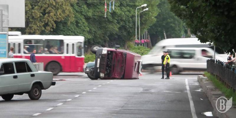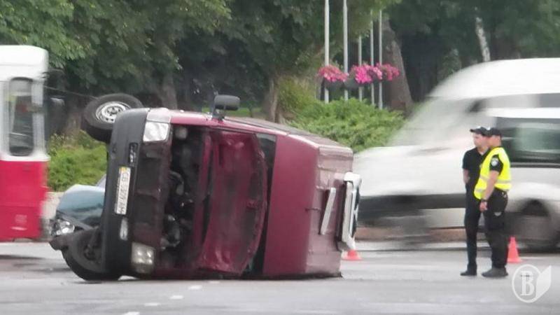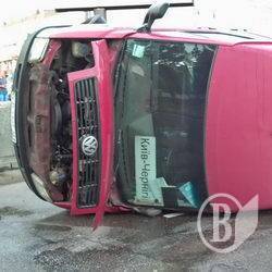 Водій легковика ВАЗ-21099 піддав маршрутці на Київ такого прискорення, яке було несумісне зі збереженням вертикального положення цього мікроавтобуса «Volkswagen LT35D».