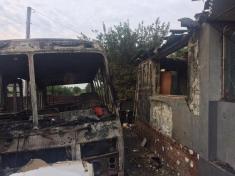 На той момент вогонь охопив транспорт і встиг перекинутися на веранду поруч розташованого житлового будинку.