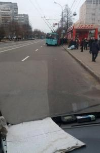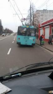 Тролейбус КП «ЧТУ» маршруту №7 з бортовим номером 417 «сів» на асфальт проспекту Перемоги в Чернігові.