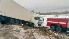 О 09:50 до оперативно-координаційного центру Управління ДСНС України у Чернігівській області надійшло повідомлення про те, що поблизу с. Кошівка Чернігівського району в кювет потрапив вантажний автомобіль "DAF".