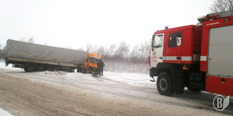 Автотранспорт потрапляв у снігові замети. Вивільнено 8 вантажівок та 2 легкових автомобіля.