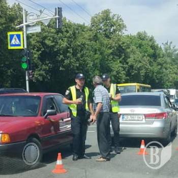 Не розминулися два легковика у Чернігові на перехресті одного з центральних проспектів – Миру та вулиці Мартина Небаби.