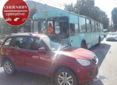 «Лайнер» з бортовим номером 421 комунального підприємства «Чернігівське тролейбусне управління» вдарив китайське авто.
