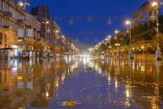 Кількома фото Ельдара Сарахман демонструє перетворення Києва на «Венецію» після дощу.