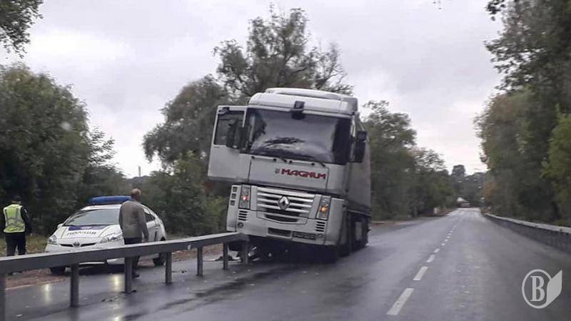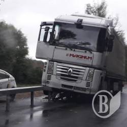 На свіжовідремонтованій вулиці Лісковицька в Чернігові, після встановлення там огородження, на нього наїхала фура.