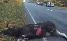 На трасі М-01 за 12 км до села Нові Яриловичі сталося зіткнення легковика Volvo з дикою твариною – лосем.