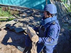 26 піротехнічних розрахунків Державної служби України з надзвичайних ситуацій, до яких увійшли 130 саперів та задіяно 44 одиниці спецтехніки, продовжують очищення прилеглої до 6-го арсеналу боєприпасів території, що поблизу смт Дружба Ічнянського району.