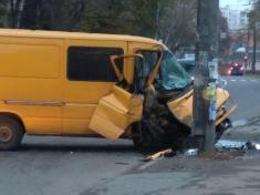 Гонщик-фургонщик на жовтому фургоні вже незрозуміло якої моделі на вул. Ріпкинська в Чернігові вдарився у бетонний стовп.