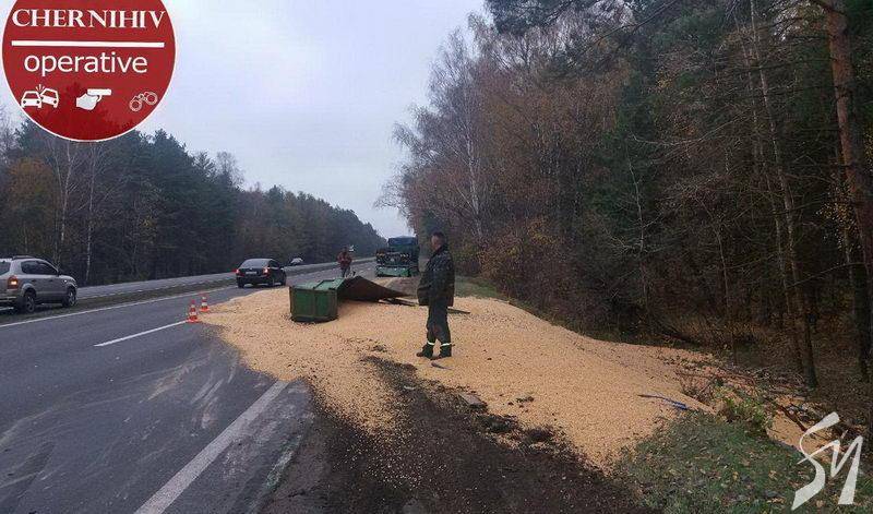 Водій «КамАЗу» нібито їхав з не зовсім справним причепом, через що одне його колесо заклинило і сталося перекидання.