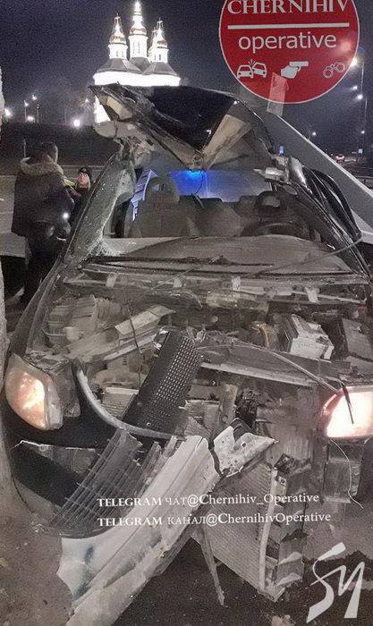 21.02.2019 Легковик поламав відбійник на мосту в Чернігові