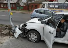 При чому вдарилося авто у стовп на протилежному боці вулиці.