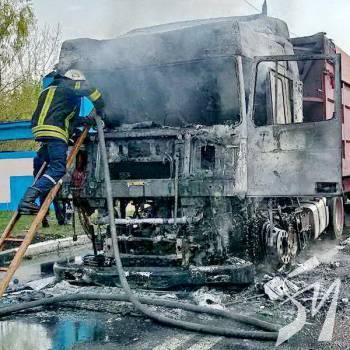 Учора, 23 квітня, сталася пожежа вантажного автомобіля «DAF» на автошляху неподалік Чернігова.