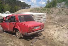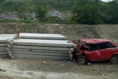 Легковик ВАЗ-2107 з'їхав на узбіччя дороги та здійснив зіткнення з бетонними плитами.