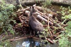 В лісочку біля с. Новий Білоус до покинутого залізобетонного кільця, наповненого водою, потрапило маленьке лосеня і самотужки не може вибратися з пастки.