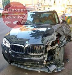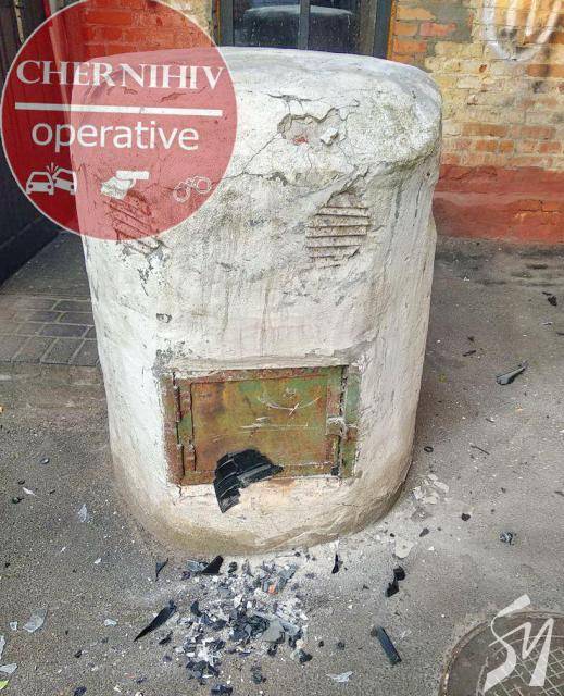 У неділю 23 червня в одному з дворів на вул. Шевченка в Чернігові, де стоять старі так звані «сталінки», чорний легковик BMW, схожий на модель X6, вдарив «гриб» вентиляції чи то підвалів, чи бомбосховища.