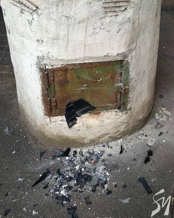 Ймовірно, «грибок» проектували й виготовляли так, щоб вибухи ворожих бомб витримував. Бо пошкоджень на ньому навіть не помітно на тлі розвороченого передка авто.