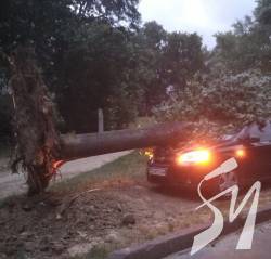 На вулиці 1 Травня чернігівці поширили фото вирваного з корінням дерева, яке упало на автомобіль