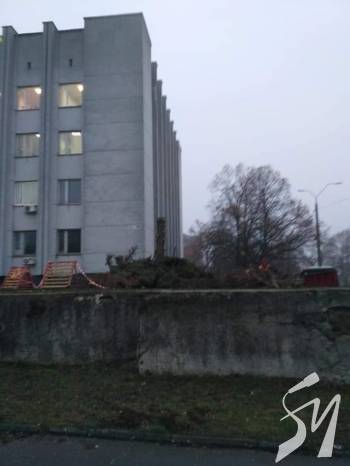 Спроби провести ремонт труби без видалення дерева тривали три дні. Весь цей час будівля – без водопостачання. Але, на жаль, водогін проходить прямо під ялиною, а копати треба на глибину 3-3,5 м.