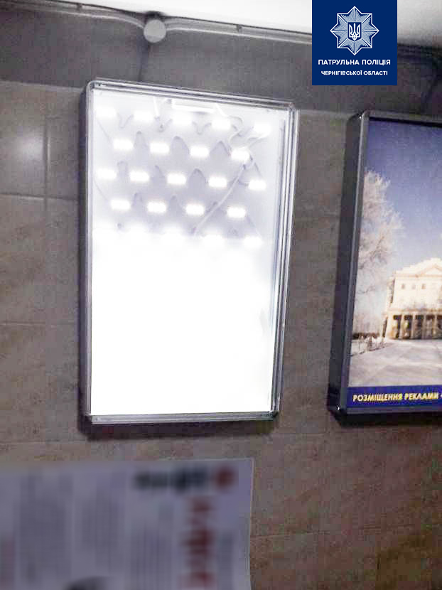 Сьогодні, 24 лютого, близько п’ятої ранку на лінію "102" надійшло повідомлення, що в підземному переході на розі проспектів Миру та Перемоги невідомий пошкодив рекламну конструкцію. На місце одразу виїхав екіпаж патрульної поліції.