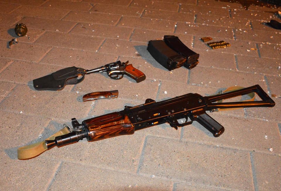 Під час затримання в Луцьку чоловіка, який захопив у заручники пасажирів автобуса, правоохоронці вилучили автомат Калашникова з магазинами, револьвер, гранати Ф-1, набої, бенгальські свічки та ніж.
