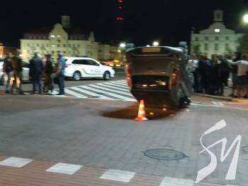 У Чернігові через аварію на Красній площі автівка перекинулась на дах