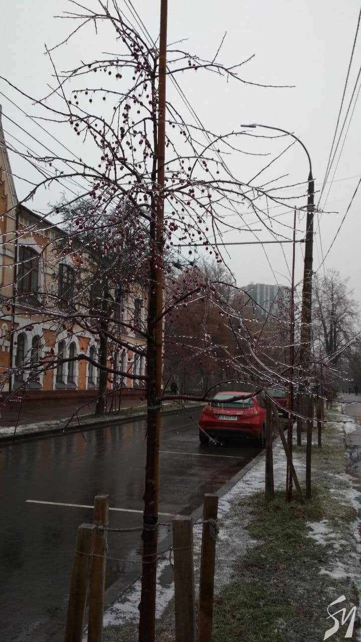 Дерева вкрилися шаром льоду, а тролейбуси зупинилися через крижаний дощ