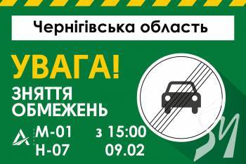 З метою недопущення накопичення великовагових транспортних засобів та виникнення заторів в дорожньому русі Служба автомобільних доріг у Чернігівській області з 13:00 8 лютого вводить обмеження руху великовагових транспортних засобів в напрямку м. Київ: