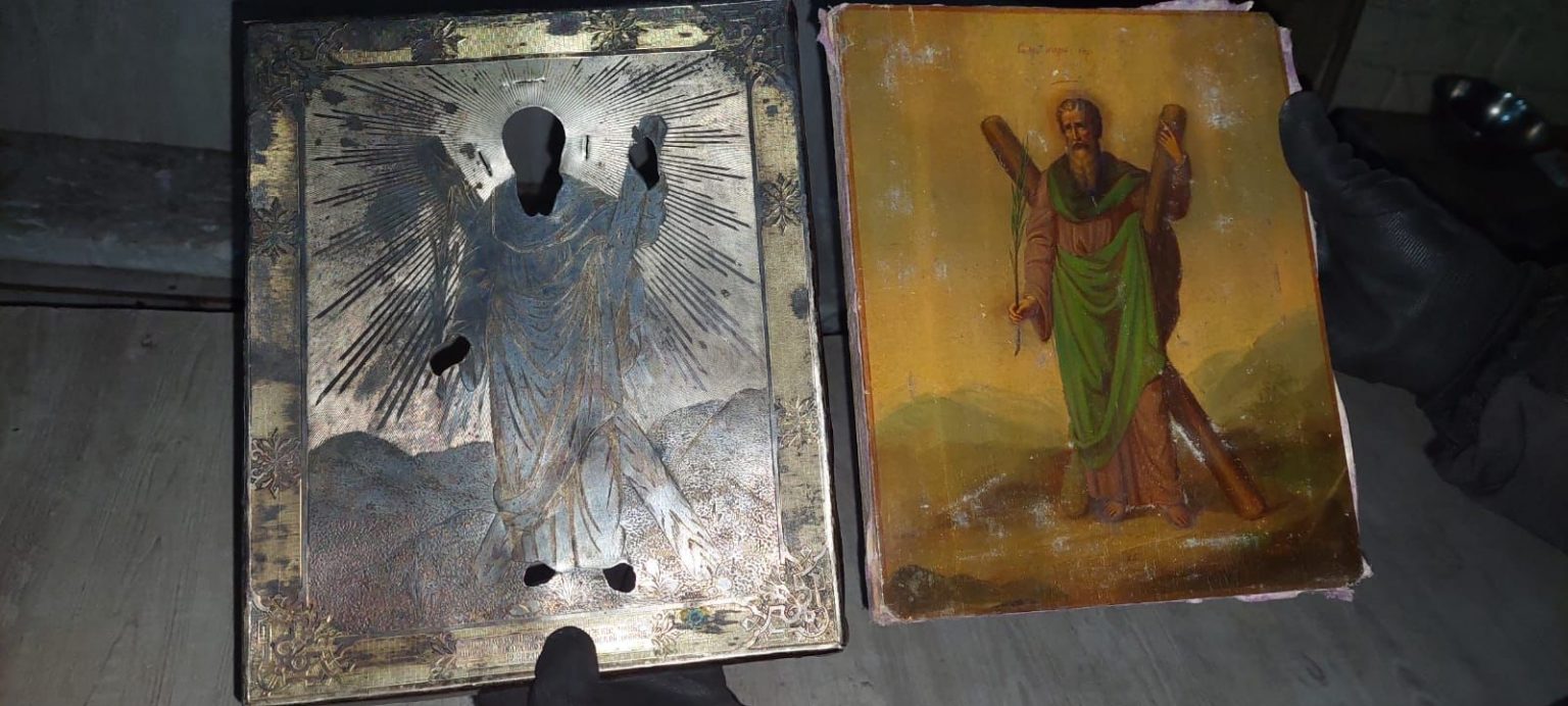 Оглядова група виявила ікону Андрія Первозванного в срібний ризі, яку водій закріпив клейкою стрічкою на спині під одягом.