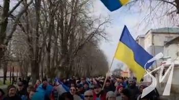 У тимчасово окупованій російськими військами Каховці на Херсонщині люди вийшли на мітинг за Україну.