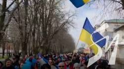 У тимчасово окупованій російськими військами Каховці на Херсонщині люди вийшли на мітинг за Україну.