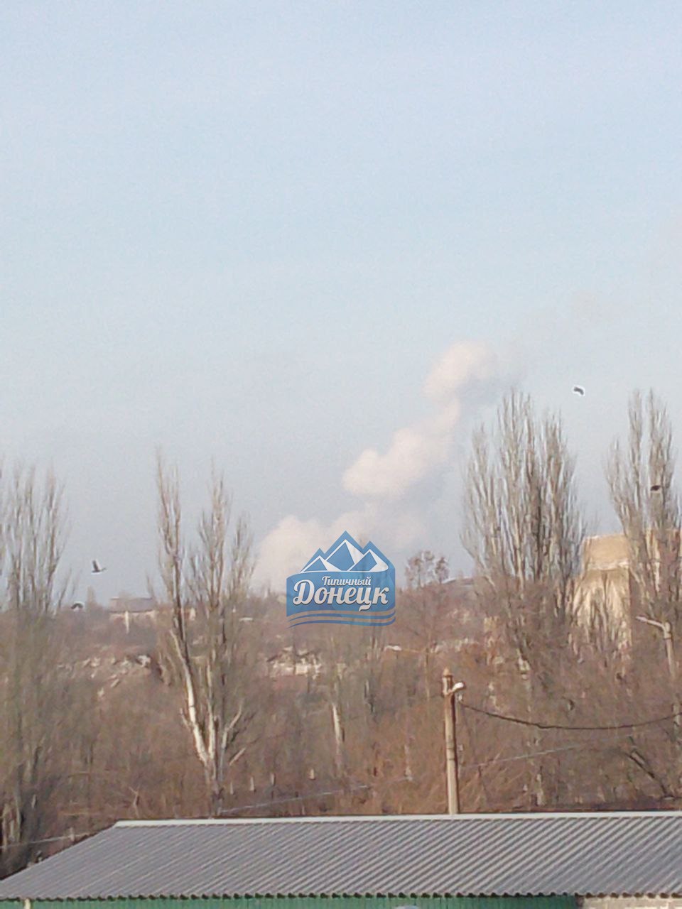 Місцева "адміністрація" заявила про БПЛА, збитий за 35 км від міста, проте дим піднімається в районі аеропорту.