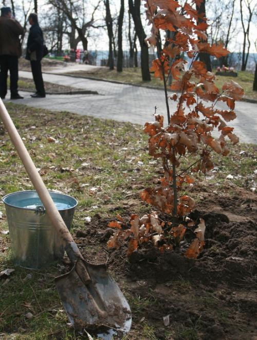 Посадка дерев у рамках акції «Зелені паростки майбутнього» на Болдиній горі в Чернігові. © Віктор КОШМАЛ