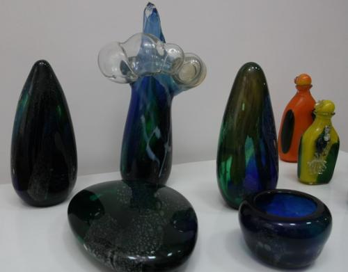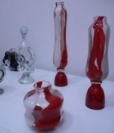 Гутне скло – це витвір мистецтва, що народжується в полум’ї. На жаль, ні львівської фабрики, ні київського заводу вже немає, тому найбільшу цінність складають авторські вироби, які виготовлялись в обмеженій кількості до ювілейних дат і виставок. На виставці представлені неповторні і самобутні роботи Франца Черняка («дари моря», 1987), Івана Аполлонова («Полонина», 1983), Світлани Голембовської (набір «Біла квітка», 1970).