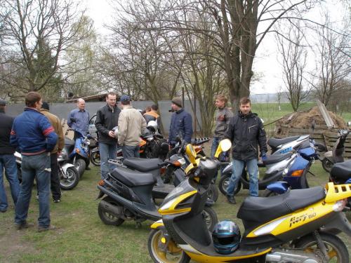 Чернігівські шанувальники скутерів влаштували цієї суботи, 12 квітня своєрідне відкриття сезону. Зібрались о 12 годині у районі Чернігівського РАГС і вирушили до села Новий Білоус.