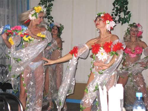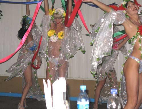 Учасники семінару їли суп та котлети, коли перед ними випурхнули…. Майже голі дівчата мали показати щирих українок. Танцювали під народні пісні. Спочатку купальські, потім весільні.