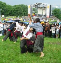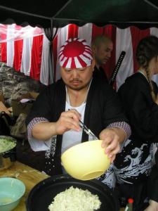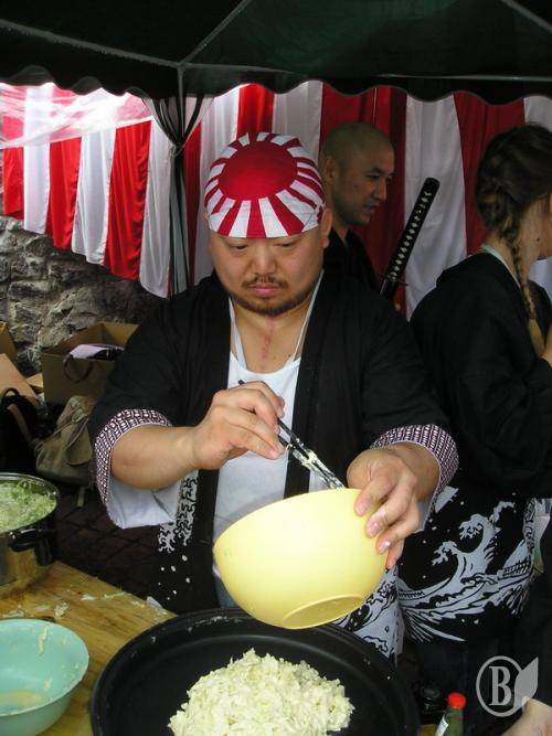 У кращих японських традиціях на невеличкому клаптику території - майстер-клас японського танцю під великий барабан, чайна церемонія, дегустація японської піци, каліграфічне написання імен і побажань на рисовому папері і не тільки.