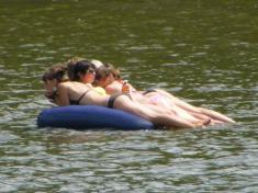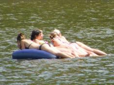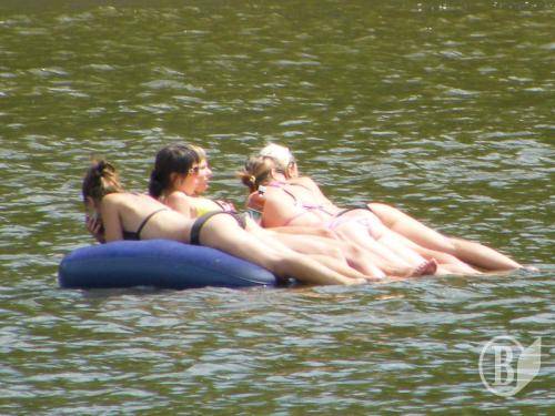Пятеро девушек, не поделив матрас, пытаются его вместе притопить. Трудно не обратить внимание на такое зрелище! Тем более – просто фотографировать.