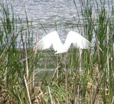 Вона так гордо і звисока оглядала озеро, немов висока дівчина. Для іще більшої зверхності чапля періодично оглядала свої володіння, облітаючи водойму.