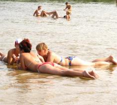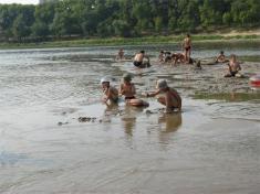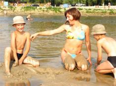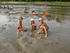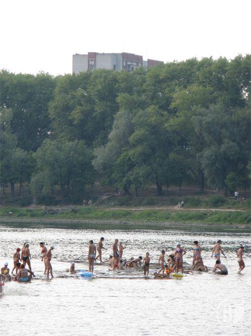Біля човнової станції на Бобровиці Десна обміліла там, що посеред річки можна ходити по коліно. З’явилися "острови", де батьки і малята із задоволенням будують фортеці. Вода, дно – все чудово!