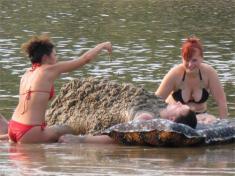 А от на берег виходити не дуже приємно. Як і всюди, вистачає битих пляшок та автомобілістів, яким лінь пройти 10 хвилин від зупинки. Краще проїхати по дитячих головах.