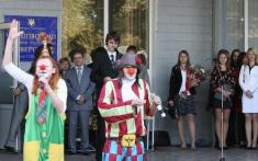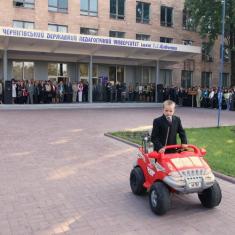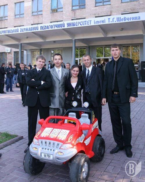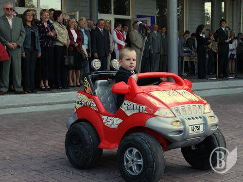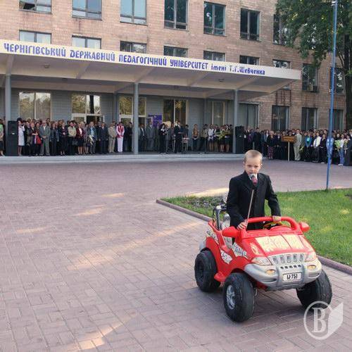 Хлопчина тричі виголосив «Вітаю у найкращому вузі України» та проїхав по колу на дитячому автомобільчику перед очима здивованих першокурсників, приголомшених викладачів та представників адміністрації університету.