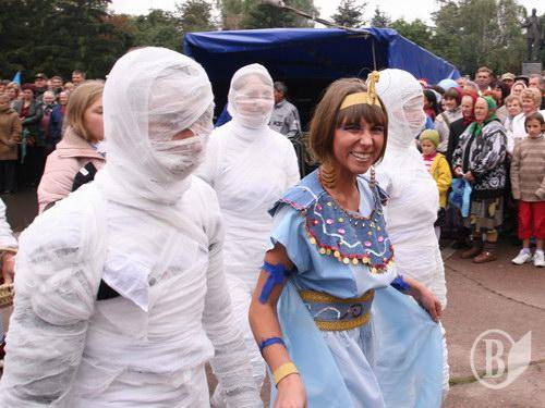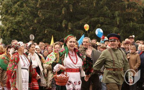 14 сентября, Сосница, центр города. Рота «солдат» из кинофильма «Свадьбы в Малиновке» неспешно проходит по площади мимо зрителей. За ними идёт екскорт персонажей из других кинофильмов.