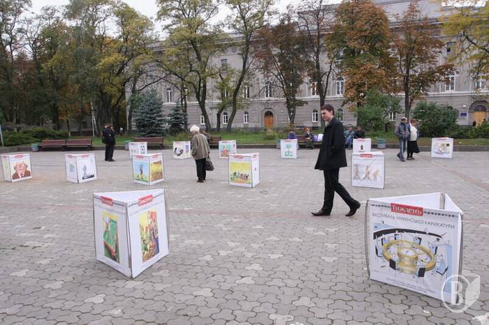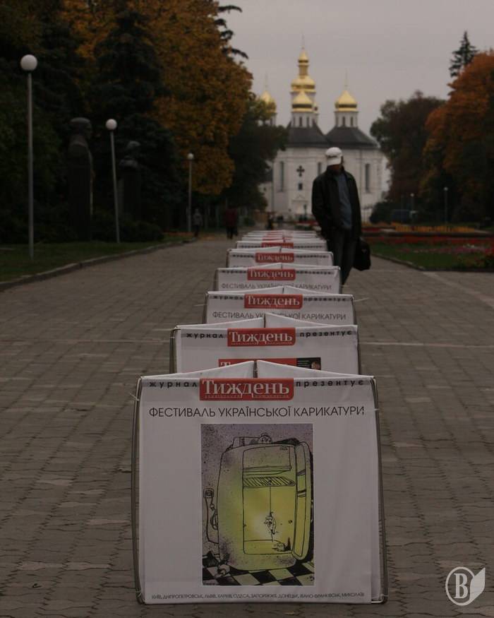 Пересувна виставка української карикатури відвідала Чернігів. Вона була виставлена на стендах на Алеї Героїв для ознайомлення і огляду жителів і гостей міста.